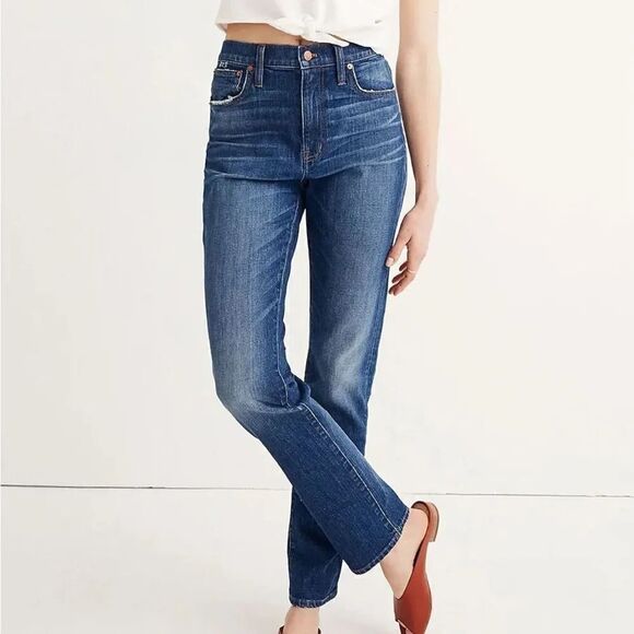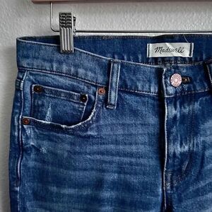 The High-Rise Slim Boyjean from MADEWELL! Boyfriend cut with approximately 8.5" rise. Inseam is 30" - medium Wash. Size 26, worn twice. See size chart from MADEWELL in photos.