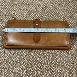 The MADEWELL The Leather Post Wallet in English Saddle Leather is a stylish and practical accessory for women. Made with high-quality leather in a solid brown color, this wallet features a button closure and credit card accents. With a one-size-fits-all design and sleek dimensions of 7.5" in length and 3.5" in width, this wallet is the perfect blend of functionality and fashion. Perfect for everyday use, this Madewell wallet adds a touch of sophistication to any outfit.