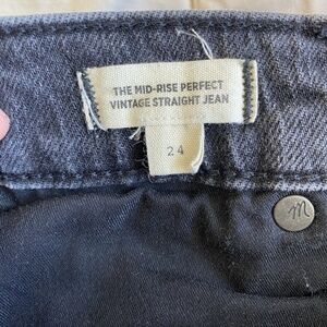 MADEWELL The Mid-Rise Perfect Vintage Straight Distressed Jeans Black Sz 24