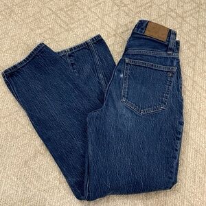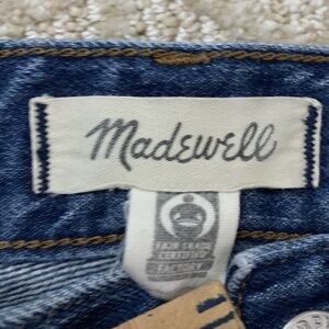 “Beautiful jeans 90' inspired straight-legged jeans has a heart-shaped yoke and vintage-Y back packets.Please see pictures for more details measurements are estimated and taken on a flat surface.”The MADEWELL The Perfect Vintage Straight Jean in Greenhaven Wash is a classic pair of women's jeans in size 23. Made from cotton denim with a dark wash, these straight-leg jeans feature a mid-rise fit and a 27-inch inseam. They come in a solid blue color with a zip closure and are machine washable. Perfect for a 90s-inspired look, these jeans are versatile for all seasons and can be styled for different occasions with the added feature of pockets.
