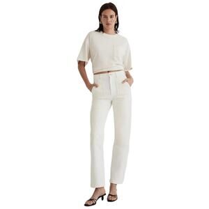 Tags: Madewell petite jeans, two-tone workwear denim, minimalist streetwear, quiet luxury neutral jeans, vintage 90s fit, effortless casual pants, utility core aesthetic, structured cotton denim, Parisian off-duty look, neutral capsule wardrobe staple, fall and spring street style, soft modern workwear, timeless straight-leg silhouette.