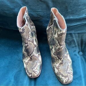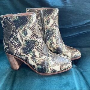 MADEWELL The Rosie Ankle Boot Square Toe Snake Leather chunky block heel SIZE 6
