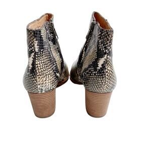 Keywords: Madewell snake print boots, embossed leather ankle booties, neutral statement shoes, modern minimalist fall footwear, quiet luxury everyday style, city chic capsule wardrobe, street style staple, transitional season ankle boots, timeless stacked heel design.