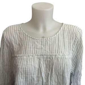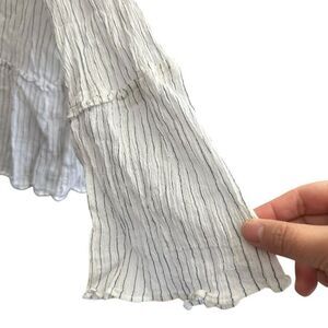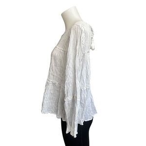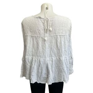 MADEWELL Tiered Top in Haysboro Stripe Pom-Pom Tassel Back Flared Sleeve Large