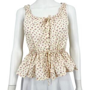 MADEWELL Top Women Size XXS Blouse Shirred Drawstring Floral Tank Top Bight Bud