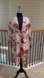 Stylish kimono with a bold tropical leaf design. Features rich brown and white colors. 3/4 SLEEVES WITH ELASTIC HEM, HOOK AND EYE CLOSE, SIDE POCKETS, 100% Cotton, PRE OWNED, IN BEAUTIFUL CONDITION: