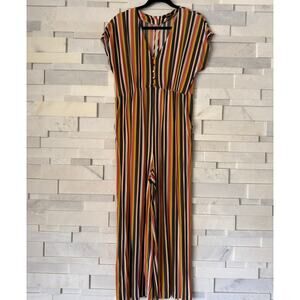 MADEWELL V-Neck Button-Front Jumpsuit Rainbow Stripe Mavis Multi Stripe Bone 6