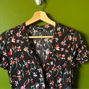 MADEWELL V-Neck Button-Front Mini Dress in Drifting Flowers SIZE 00