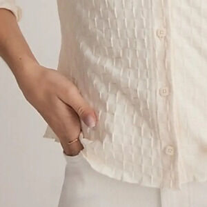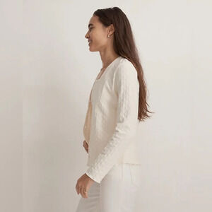 MADEWELL V-Neck Cardigan Checkerboard Jacquard in Antique Cream