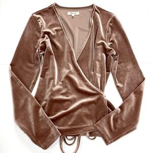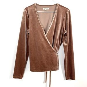 Madewell Velvet Ballet Wrap Top in Camel Tan Style# K4384