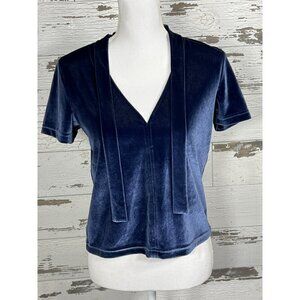 MADEWELL Velvet Tie-Neck Top Royal Blue Sz XS EUC