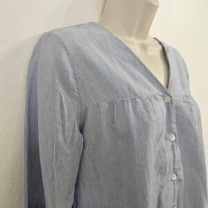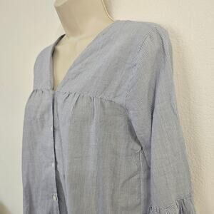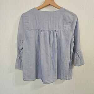 Blue and white striped bell-sleeve blouse. V-neck with front button closure. Size XS. EUC.