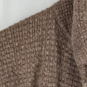 Cozy oversized cardigan by Madewell in a rich brown knit. Crafted from a warm merino wool blend with a relaxed silhouette, shawl collar, and front pockets. Perfect for layering in cooler weather. Pre-owned in clean condition.