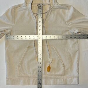 THIS BOHO WOVEN HOODIE HAS CONTRASTING GOLD STITCHING AND GOLD TASSLES AT THE END OF THE NECK TIES. UNBLEACHED, NATURAL COTTON. LIGHTWEIGHT AND BREEZY. KEYHOLE NECKLINE WITH TIE. BOXY AND CROPPED. BEACH, VACATION, SUMMER, FESTIVAL. NO FLAWS, PERFECT CONDITION. SIZE XX SMALL, WOULD ALSO FIT A KID. SEE PHOTOS FOR MEASUREMENTS.