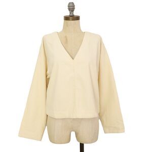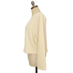 MADEWELL Waffle-Knit Relaxed V-Neck Top S Cream Long Sleeve 100% Cotton NWT B15