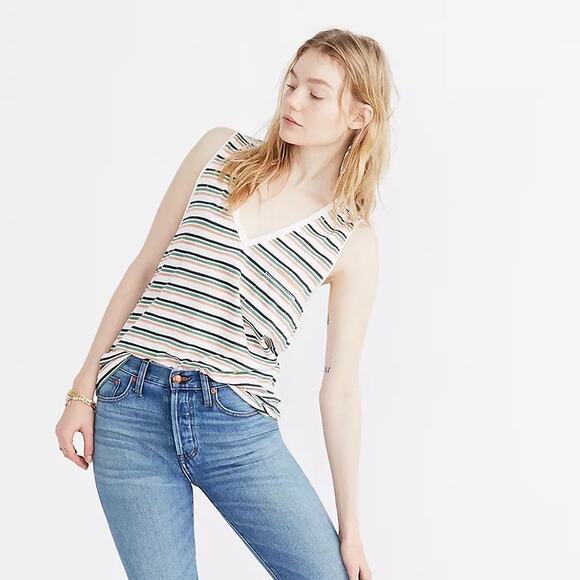MADEWELL Whisper Cotton V Neck Pocket Tank Large L