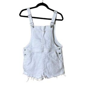 MADEWELL White Denim Shorts Overalls Size Small Raw Hem