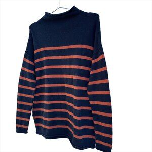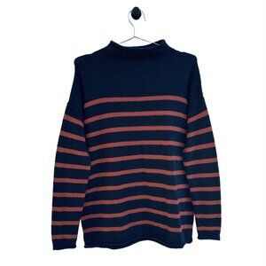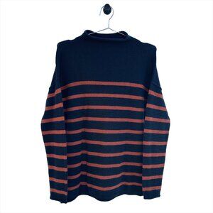 MADEWELL Whitworth Mockneck Striped Sweater - wool blend - XXS - navy, orange