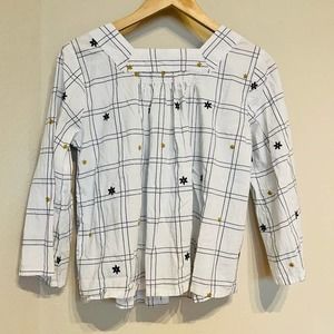 MADEWELL Windowpane Embroidered Boho Square Neck Button Down Blouse SMALL