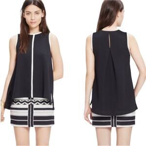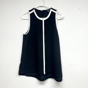 MADEWELL Women Black Crepe Canal Piped White Trim Tank Top Size XS