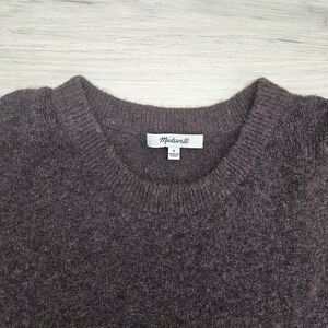 This Madewell sweater is a must-have for any fashion-forward woman. The brown color and button accents give it a classic look that is perfect for any occasion. The pullover style and alpaca wool material make it comfortable and easy to wear.
