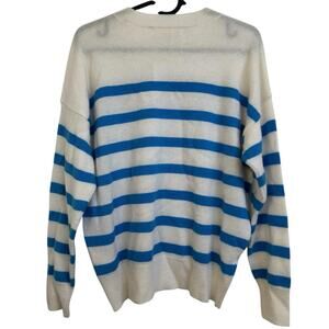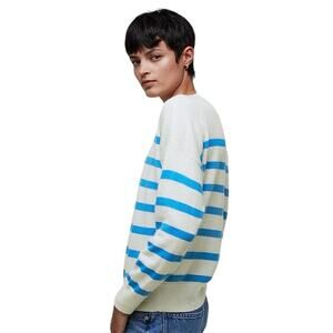 MADEWELL Women’s Cashmere Oversized Crewneck Sweater Hthr Blue Sky Stripe-Sz XXS