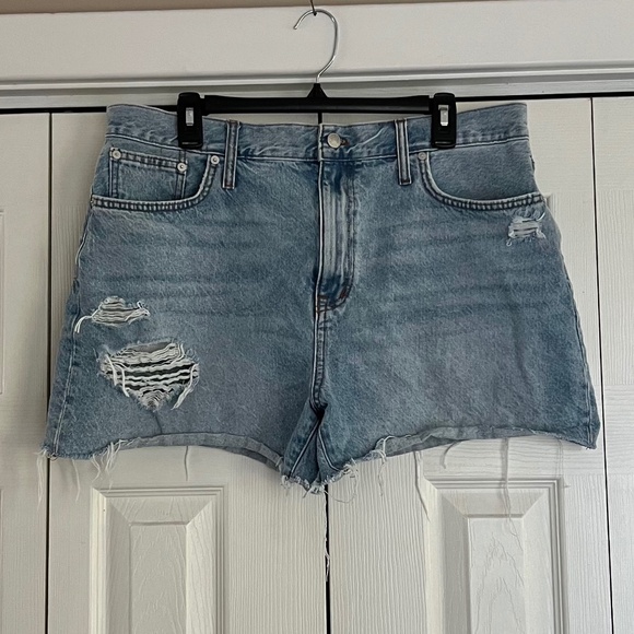 These MADEWELL Women's Light Wash Mom Jean Distressed Denim Shorts are a Ladies Size 32 and in great preowned condition!!