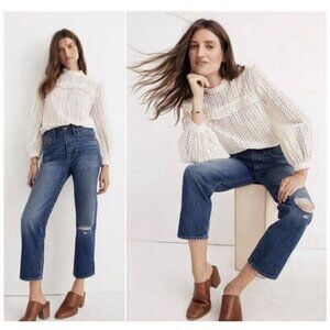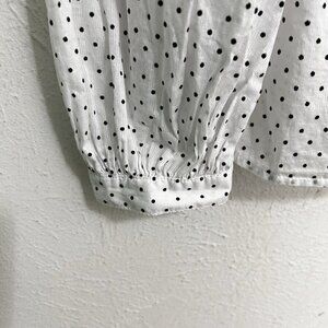 MADEWELL Women’s Mock Neck Ruffle Top in Flocked Dot White Black Polka Dot Sz S