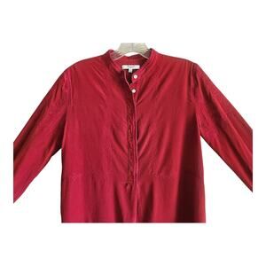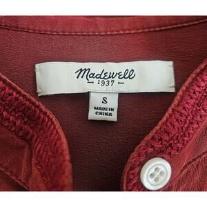 MADEWELL Women's Size S Ballad Tunic Blouse Top - 1/2 Buttons, Mandarin Collar, Cranberry Red, Long Sleeve, Curved Hem, 100% Silk