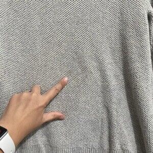 Great Pre-owned condition, does have some pilling from wear, small stain on the front has been stain treated. Color is an oatmeal gray, fabric is a thicker cotton blend with a squishy texture.