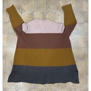 MADEWELL Women's Sweater Sz-2XL Orange /Cream Wool Alpaca Blend Striped Cardigan