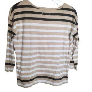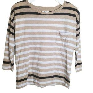 MADEWELL Womens Top Small 100% Cotton Stripe Neutral Oatmeal 3/4 Pocket Cozy