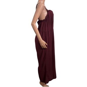 Experience effortless style with this Madewell jumpsuit, featuring a relaxed wide-leg culotte design and a chic square neckline. Crafted in a rich wine red color, this jumpsuit offers a breezy fit perfect for warm weather occasions. Its minimalist design ensures both comfort and versatility for any casual outing.