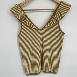 MADEWELL Women's Wool Blend Belhaven Ruffle Sweater Tank Camel Stripe Small