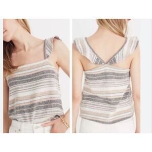 MADEWELL Womens XL Texture & Thread Ruffle-Strap Tank Top in Stripe