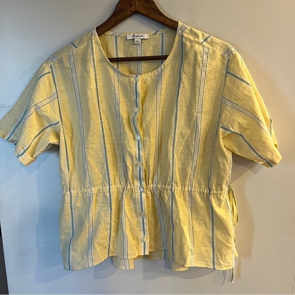 Good condition MADEWELL Women’s Yellow Striped Drawstring Waist Short Sleeve Top Size S