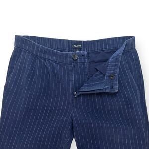 MADEWELL Wool Linen Blend Takaroo Pleated Cigarette Pants Sporty Pinstripe Blue