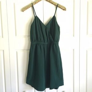 Cute Madewell cross over Strappy dress in forest green. Adjustable straps. Fully lined with pockets.