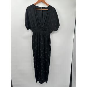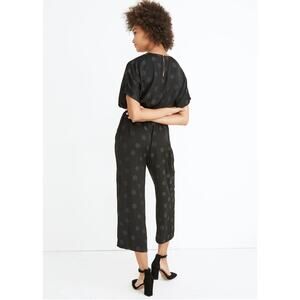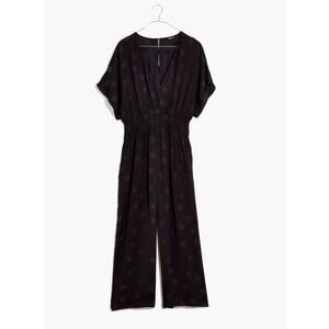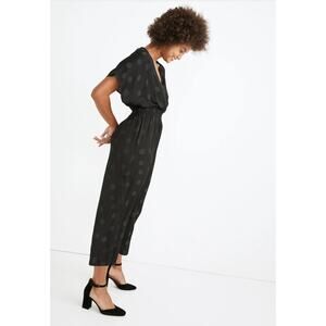 MADEWELL Wrap-Front Smock-Waist Black Jumpsuit in Dot Jacquard // S