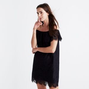 MADEWELL black lace goth off shoulder boho mini dress 0