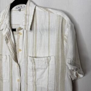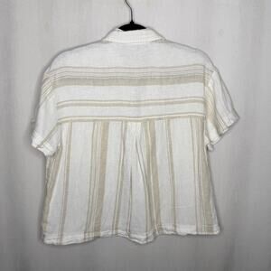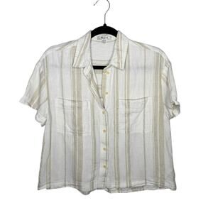Madewell cream tan linen blend striped short sleeve safari shirt undyed edition women's size small