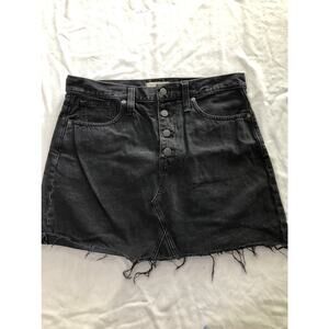 MADEWELL distressed black cutoff Rigid denim skirt a-line size 30 buttonfly