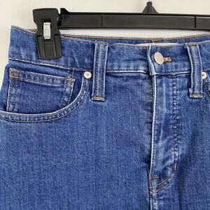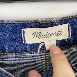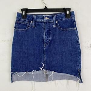 MADEWELL medium wash raw hem denim mini skirt