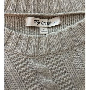 MADEWELL merino wool sweater, light gray sz small. Crisscross fringe cable knit