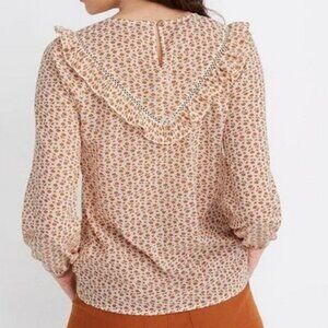 MADEWELL orange floral ruffle-yoke prairie top, Small.