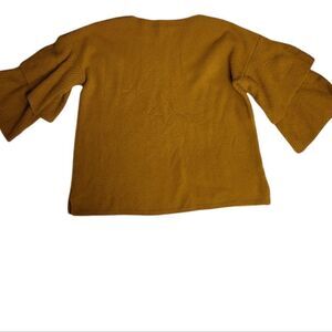 Tiered ruffle sleeves pullover sweater in coziest yarn by Madewell. Rust orange color. Some small spots shown in photos. Soft and stretchy. Acrylic nylon.