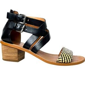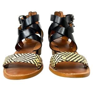 MADEWELL the Lora Leather Ankle Wrap Sandal in Black and Cream Women’s Size 6