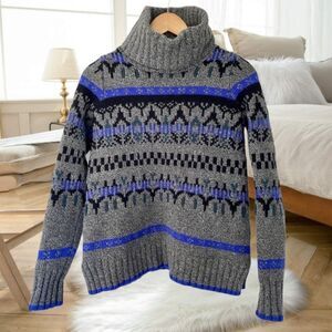 AMAZING MADEWELL FAIR ISLE TURTLECK CHUNKY KNIT SWEATER, BLUE/GREY COLOR