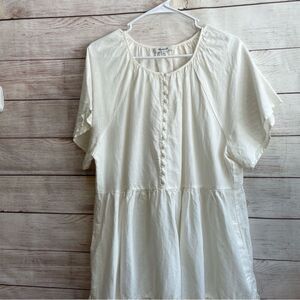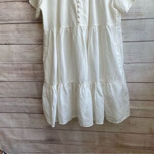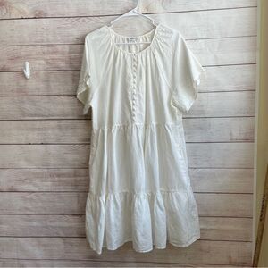 EXCELLENT CONDITION MADEWELL FLUTTER SLEEVE TIERED LINEN BLEND DRESS IN IVORY