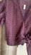 Stylish wrap blouse with ruffle sleeves. Perfect for casual outings.